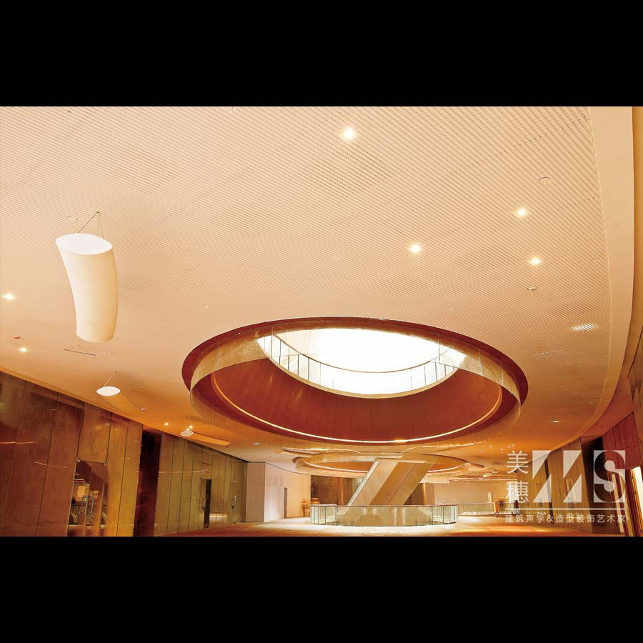 吸音天花是一种由石膏制成的新型无机复合建筑装饰材料,无任何有害物质与公害气体,属环保型绿色材料。板材可在空气湿度变化过程中有良好的透气性能,可在一定程度上调节湿度,但又不会产生水珠体依附板材表面,在相对湿度95%环境中使用,变形程度<2mm,长久使用不老化风化,十年不变形,不发霉。断裂荷载平均值为300N,板材背印采用网格结构,抗变形系数大大高于条纹背印,新型轻质高强板材,每平方米6-8KG。